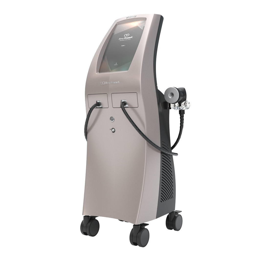 Alma PrimeX combines proven technologies: ultrasound works to reduce circumferences by breaking down excess fat deposits on arms, legs, thighs, buttocks, flanks, the submental area and abdomen; microplasma treats stretch marks; a combination of microplasma and RF tightens loose skin; and RF improves lymphatic drainage to reduce the appearance of cellulite.